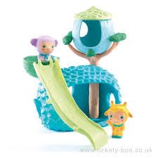 Uroczy i zabawny domek na drzewie oraz zjeżdżalnia z dwoma figurkami Artychou to część świata fantazji dla małych dzieci.