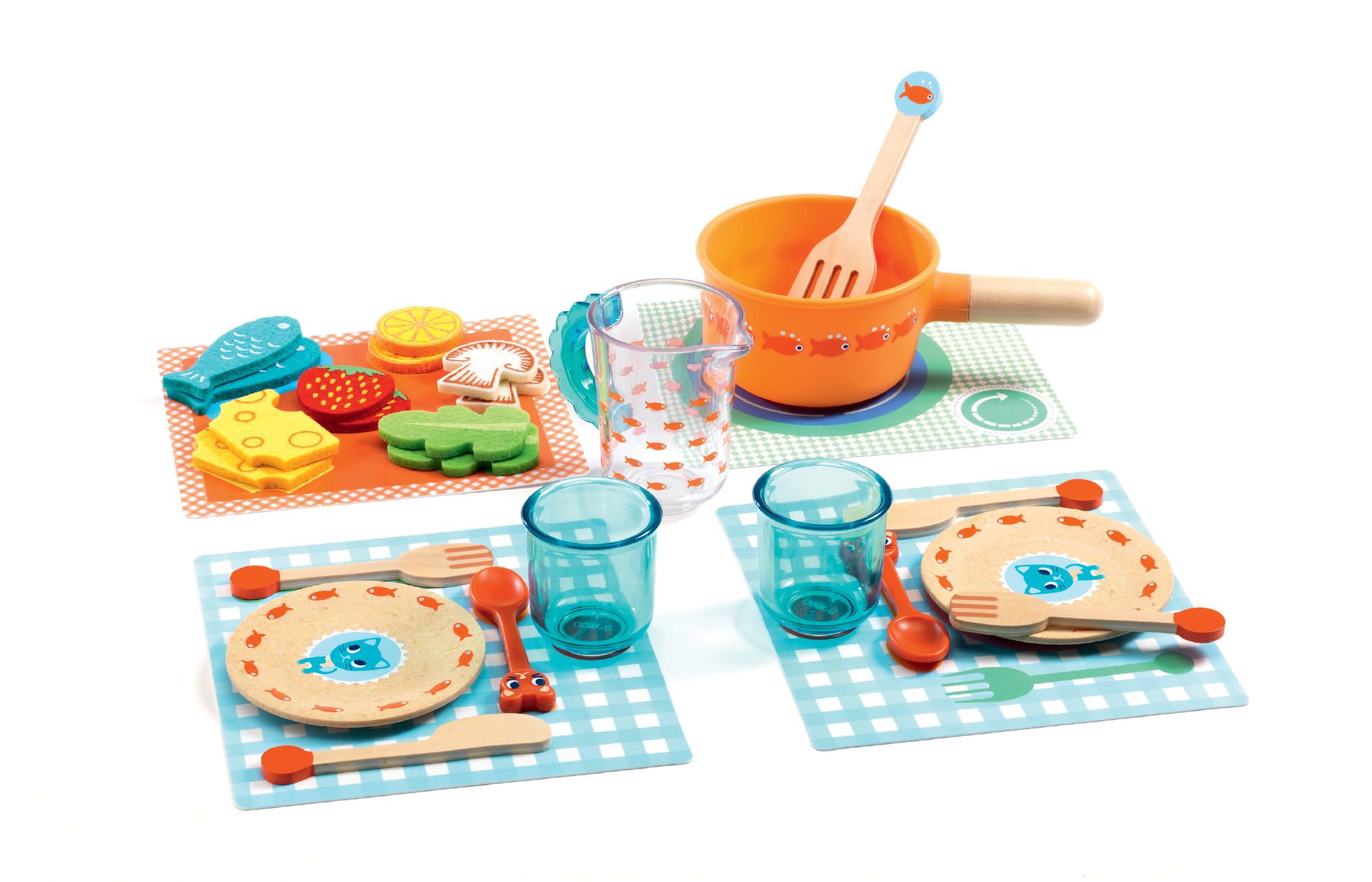 Zabawa w odgrywanie ról Zestaw obiadowy Djeco dla dzieci od 18 miesiąca życia