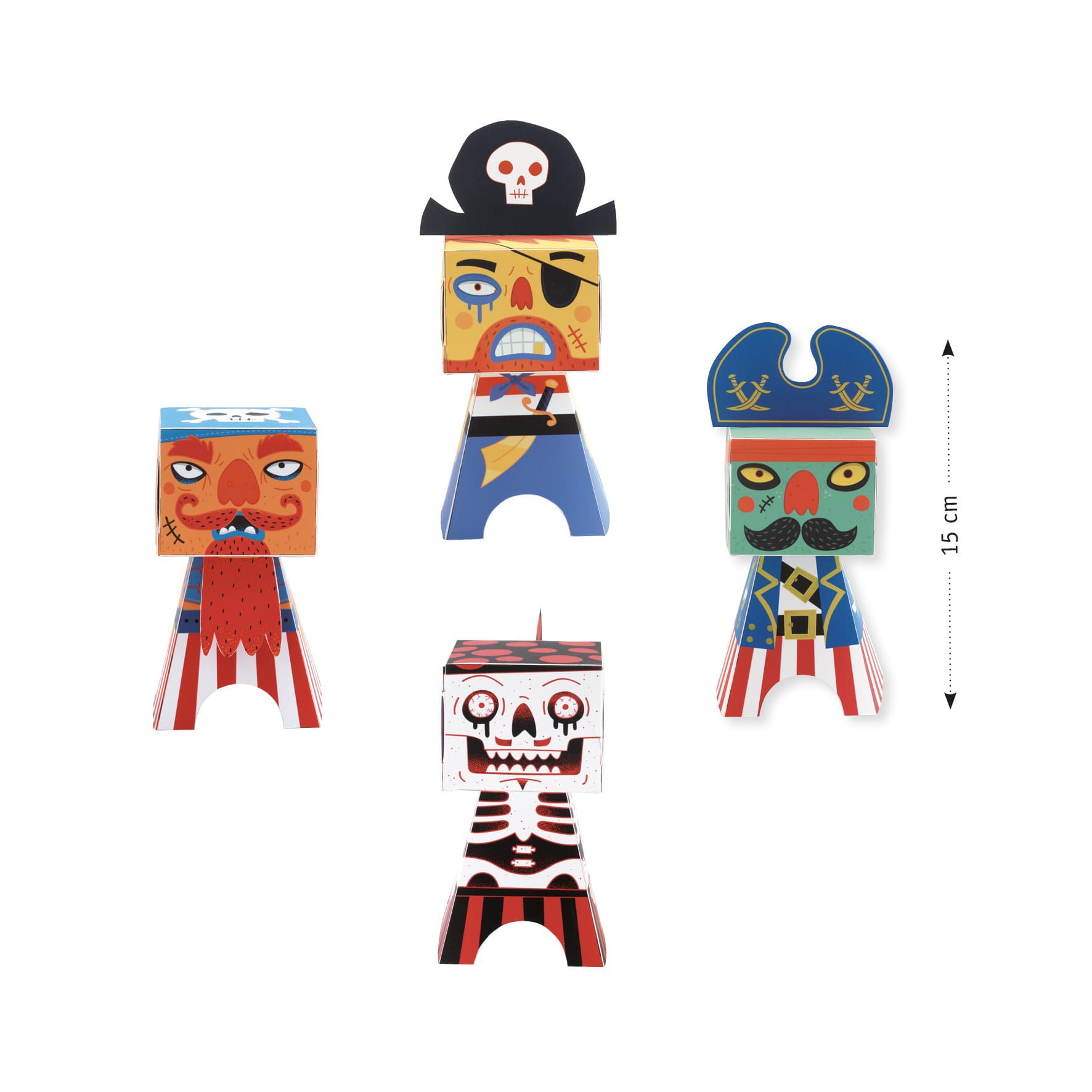 Figurki 4 piratów do samodzielnego złożenia. Figurki mają około 13 cm wysokości.