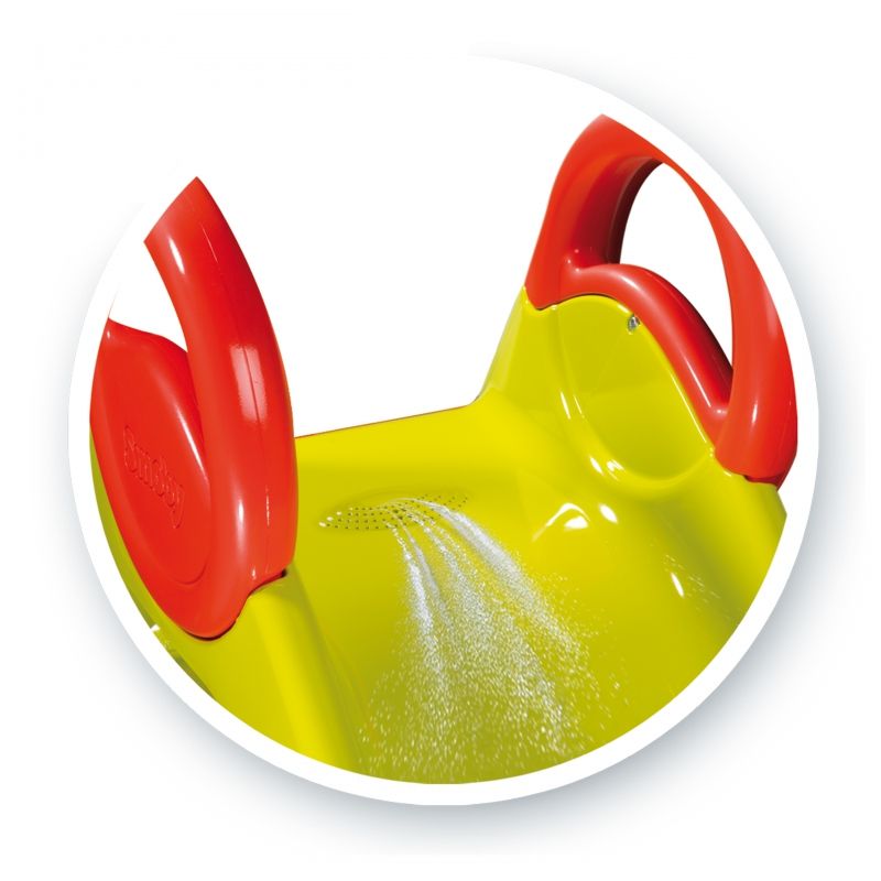 Zabawki francuskiej firmy Smoby cechuje bardzo wysoka jakość wykonania. Są wykonane z najwyższą starannością z trwałych materiałów i pomalowane bezpieczną dla dzieci farbą. Zjeżdżalnia posiada duże, ergonomiczne obręcze, antypoślizgową drabinkę oraz możliwość podłączenia węża ogrodowego w celu zroszenia ślizgu. Wyjątkowa forma zabawki zapewni doskonałą rozrywkę maluchom!