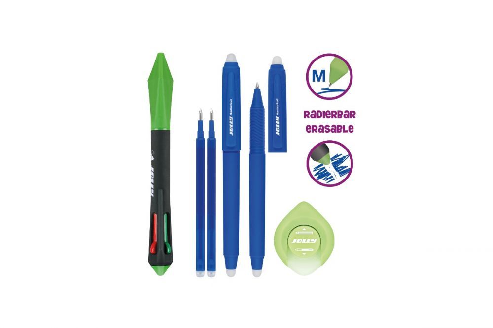 Zmywalny 4-kolorowy długopis z akcesoriami Jolly to coś, co umili Twojemu dziecku czas spędzony w szkole oraz sprawi, że nauka pisania stanie się czystą przyjemnością! Długopis ma w środku cztery wkłady w różnych kolorach: czerwonym, zielonym, niebieskim i czarnym. Dzięki temu podczas pisania można szybko i łatwo zmieniać kolory, co jest bardzo przydatne podczas robienia notatek na lekcji.