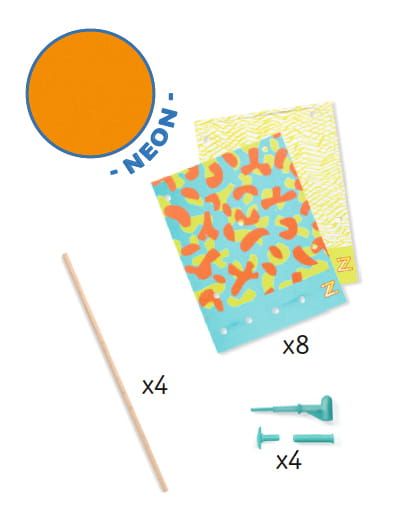 Starannie zaprojektowany zestaw Zrób to sam – wiatraki Pop zainspiruje malca do twórczej zabawy. W opakowaniu znajdują się 4 drewniane patyczki, 8 laminowanych arkuszy papieru z ozdobną grafiką oraz 4 plastikowe blokady. Zadaniem dziecka będzie połączenie elementów w taki sposób, by powstały śliczne wiatraczki do dekoracji pokoju lub zabawy na zewnątrz. Ciekawe wzory i przyciągające spojrzenie barwy na pewno spodobają się dziecku!