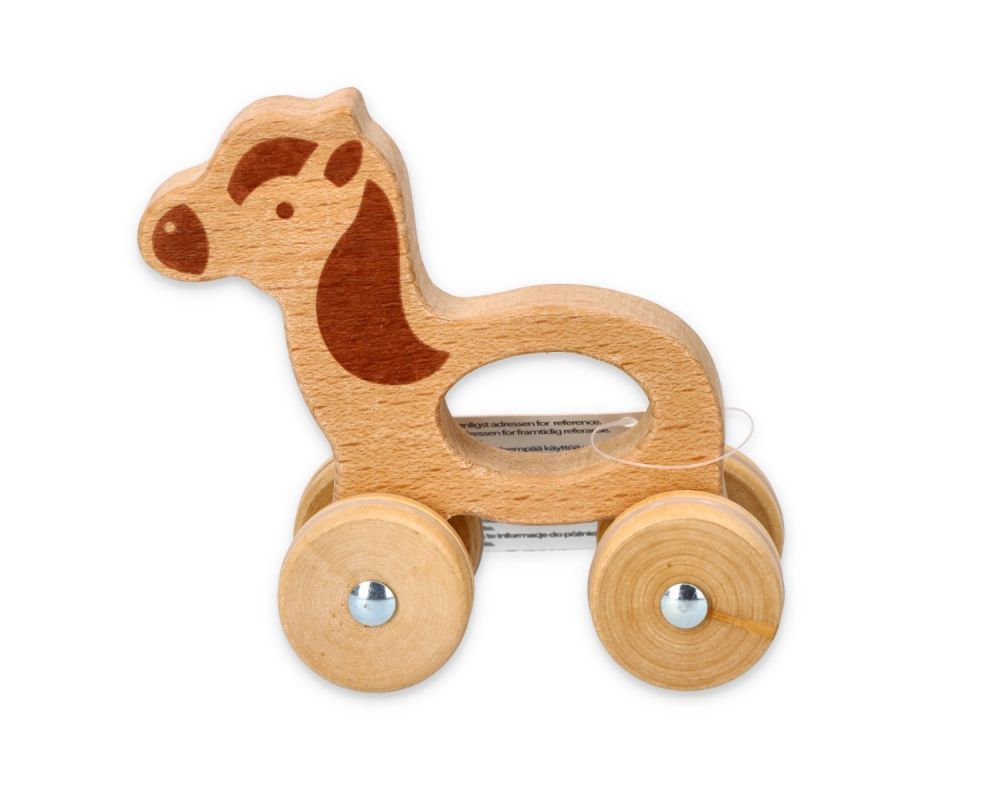 Zwierzątka na kołach zabawka do rączki Magni to idealna zabawka dla młodszych dzieci. Niewielkie rozmiary sprawiają, że zwierzątko łatwo chwycić. Cechą charakterystyczną produktu jest wysoka jakość wykonania. Zabawkę wykonano z drewna.